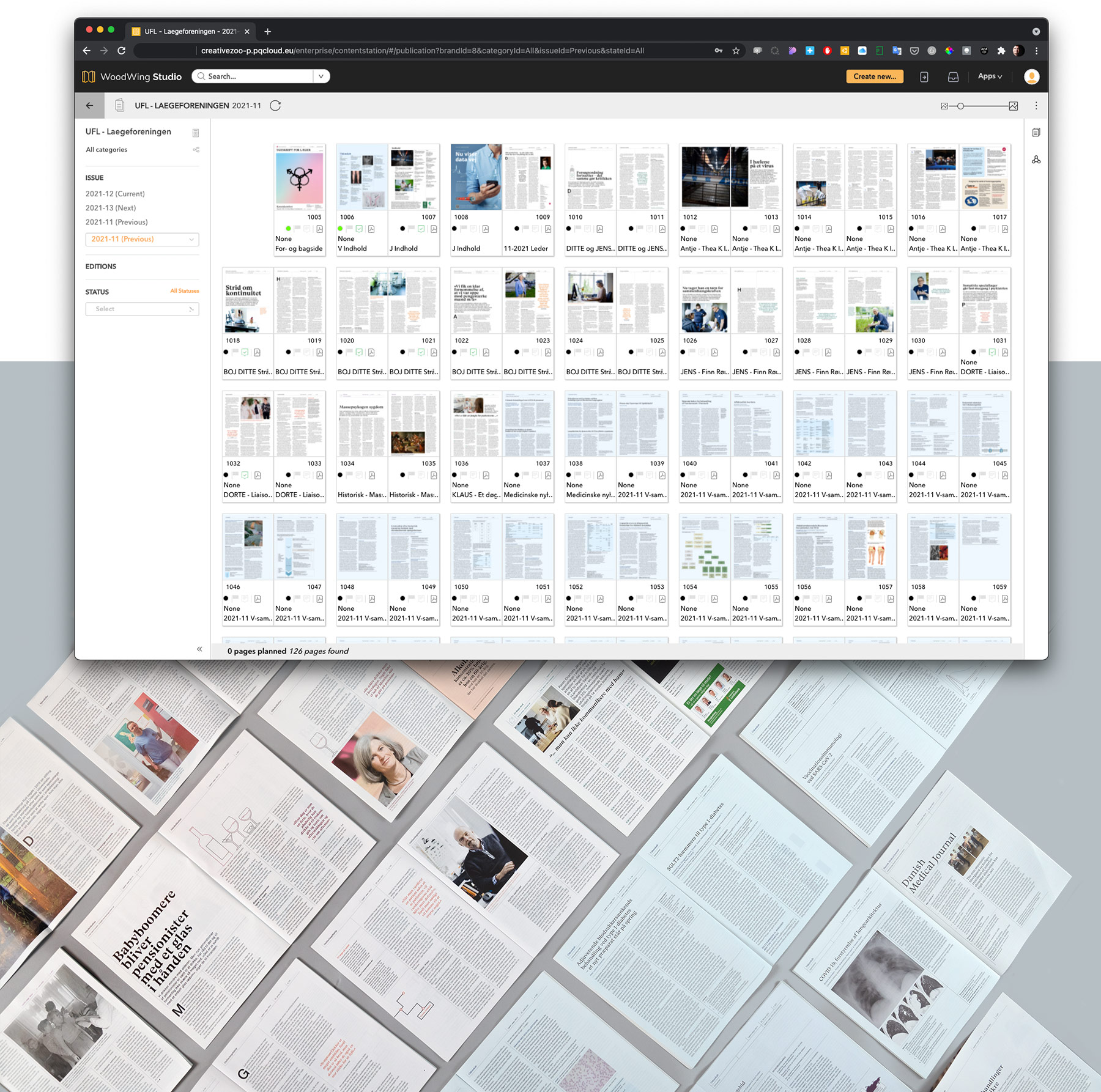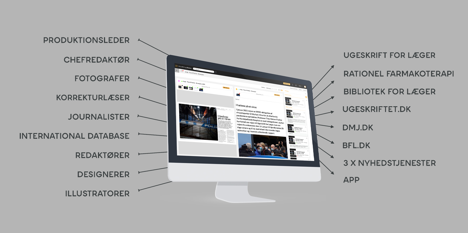 Vi har i dag et løbende samarbejde med Lægeforeningen om udvikling, produktion og udgivelse af Ugeskrift for Læger. Vi har gennem WoodWing sammen skabt et teknisk og operationelt set-up, der gør, at vi strømlinet kan producere mere end 3.300 sider om året samt indhold til ugeskriftet.dk og tryk. Vi har fastsat en arbejdsproces, der optimerer effektivitet, samarbejde, klarhed om ansvarsområder og kvalitetssikring.