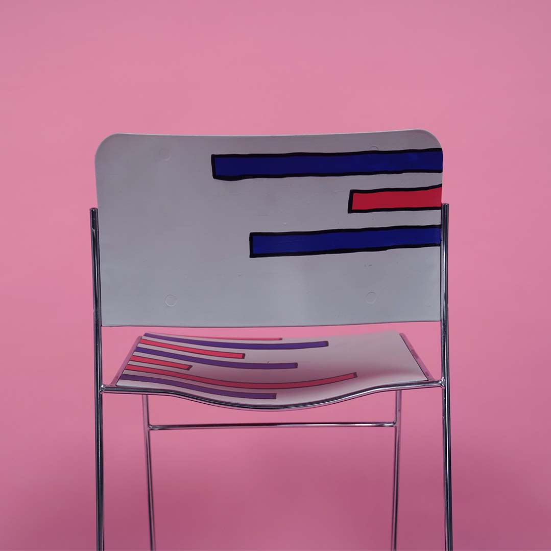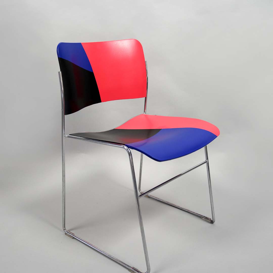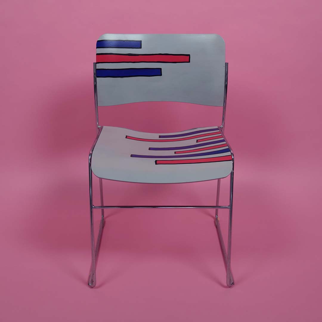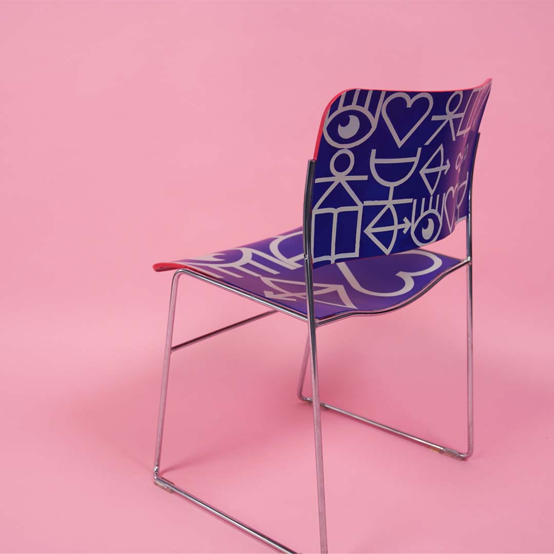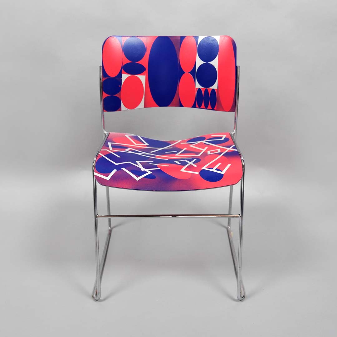Stolene, der agerede lærred til vores kreative udskejelser, var ikke bare tilfældige stole. Vi havde fornøjelsen af at gentænke den amerikanske møbeldesigner David Rowlands berømte 40/4 stol. Stolens tidløse design er et af de mest banebrydende i det 20. århundrede, og stolen er solgt i over 8 millioner eksemplarer gennem dens 60-årige levetid. At bruges vores egen kreativitet til at udsmykke et stykke historisk kreativitet, syntes vi kun var passende.