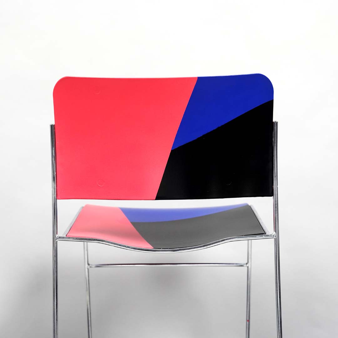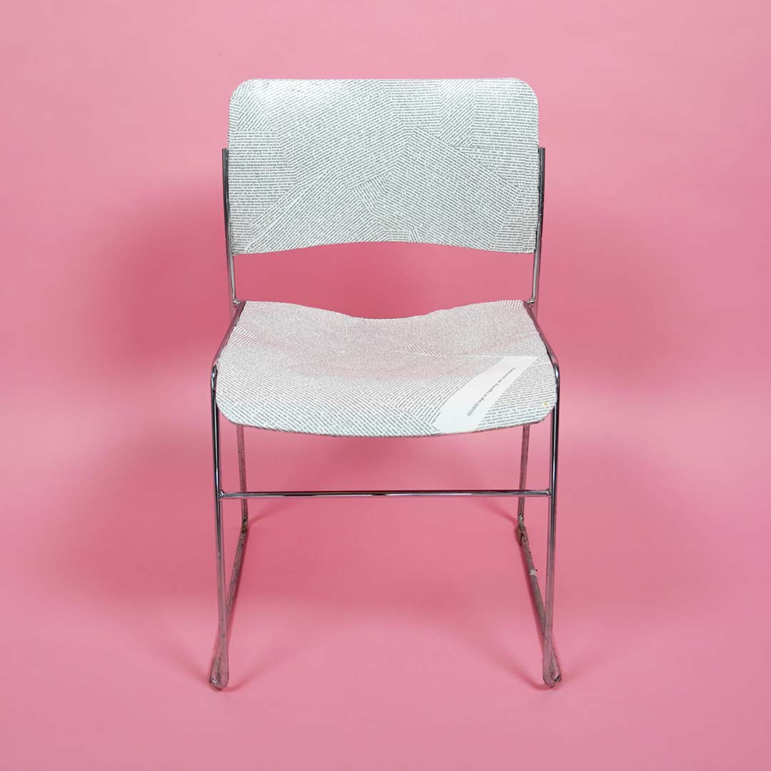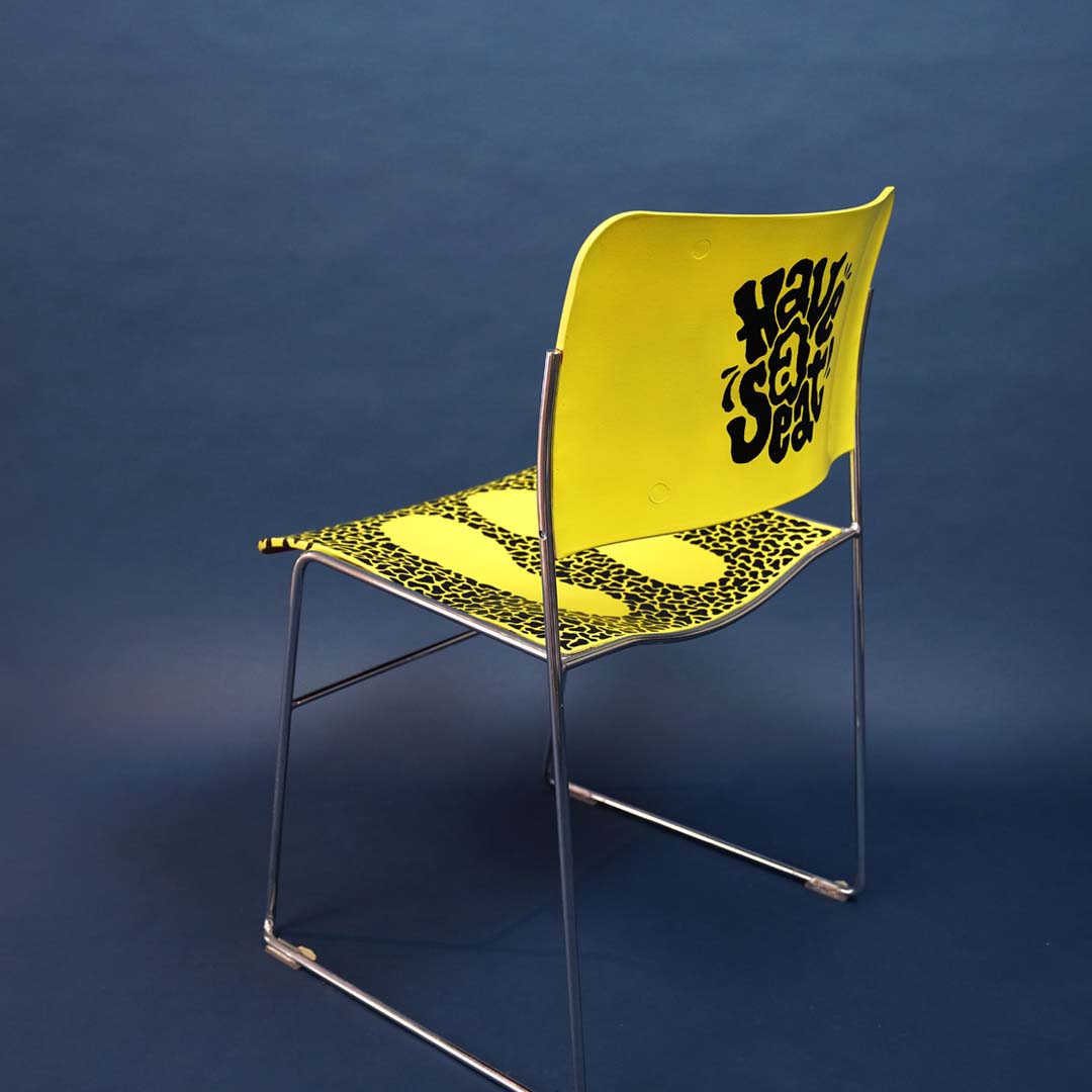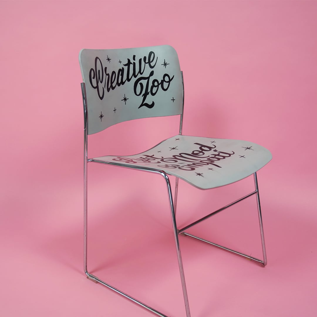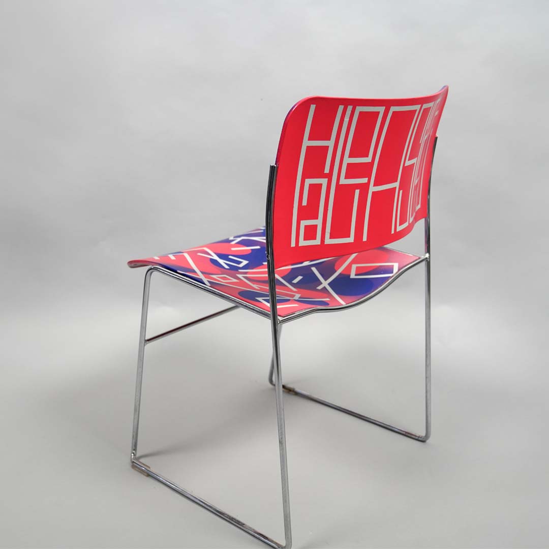 Stolene, der agerede lærred til vores kreative udskejelser, var ikke bare tilfældige stole. Vi havde fornøjelsen af at gentænke den amerikanske møbeldesigner David Rowlands berømte 40/4 stol. Stolens tidløse design er et af de mest banebrydende i det 20. århundrede, og stolen er solgt i over 8 millioner eksemplarer gennem dens 60-årige levetid. At bruges vores egen kreativitet til at udsmykke et stykke historisk kreativitet, syntes vi kun var passende.