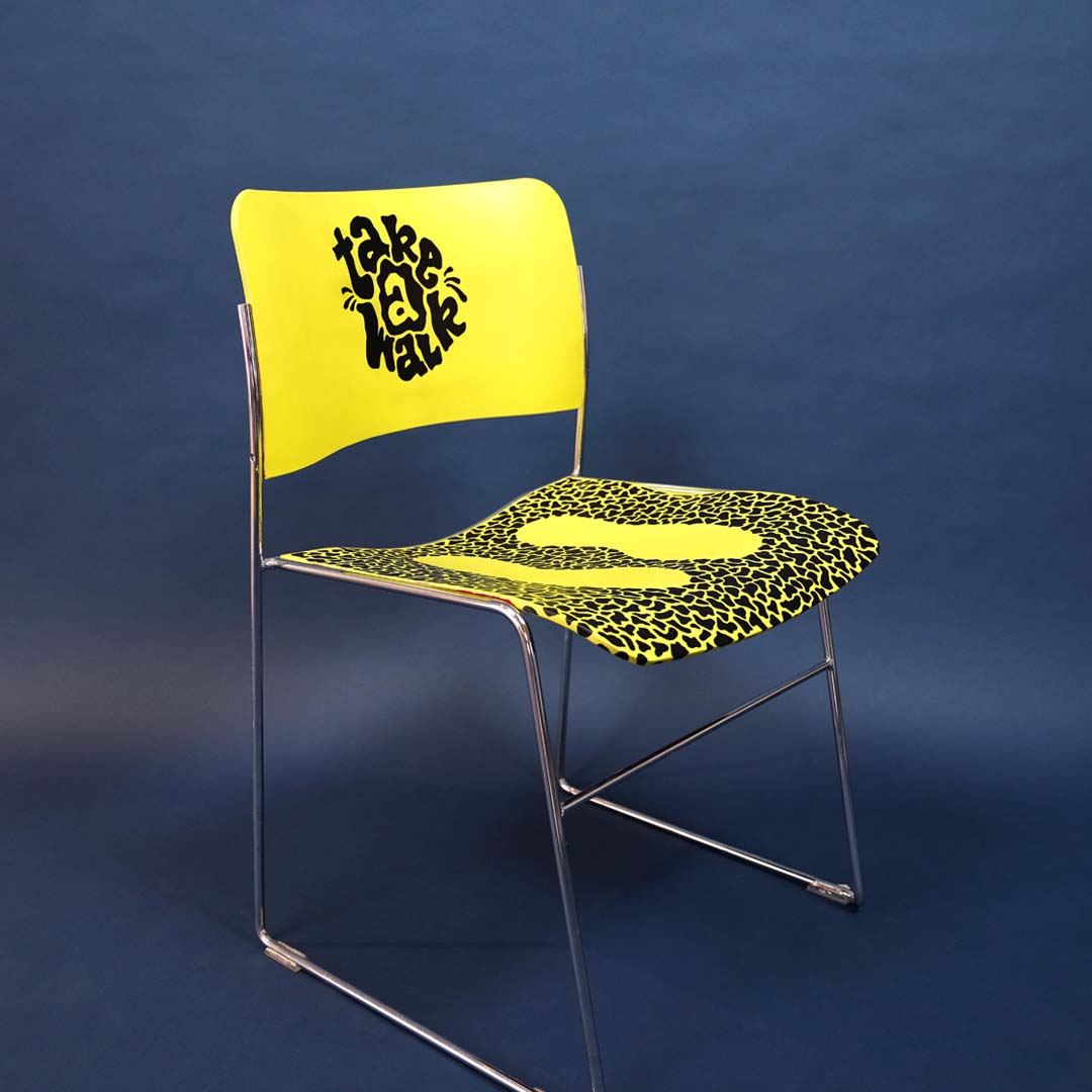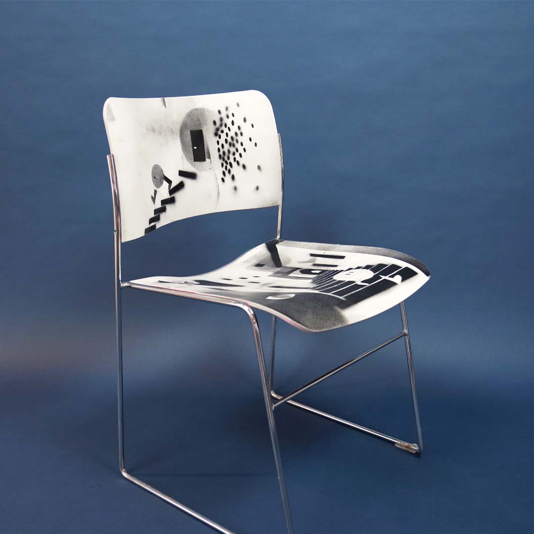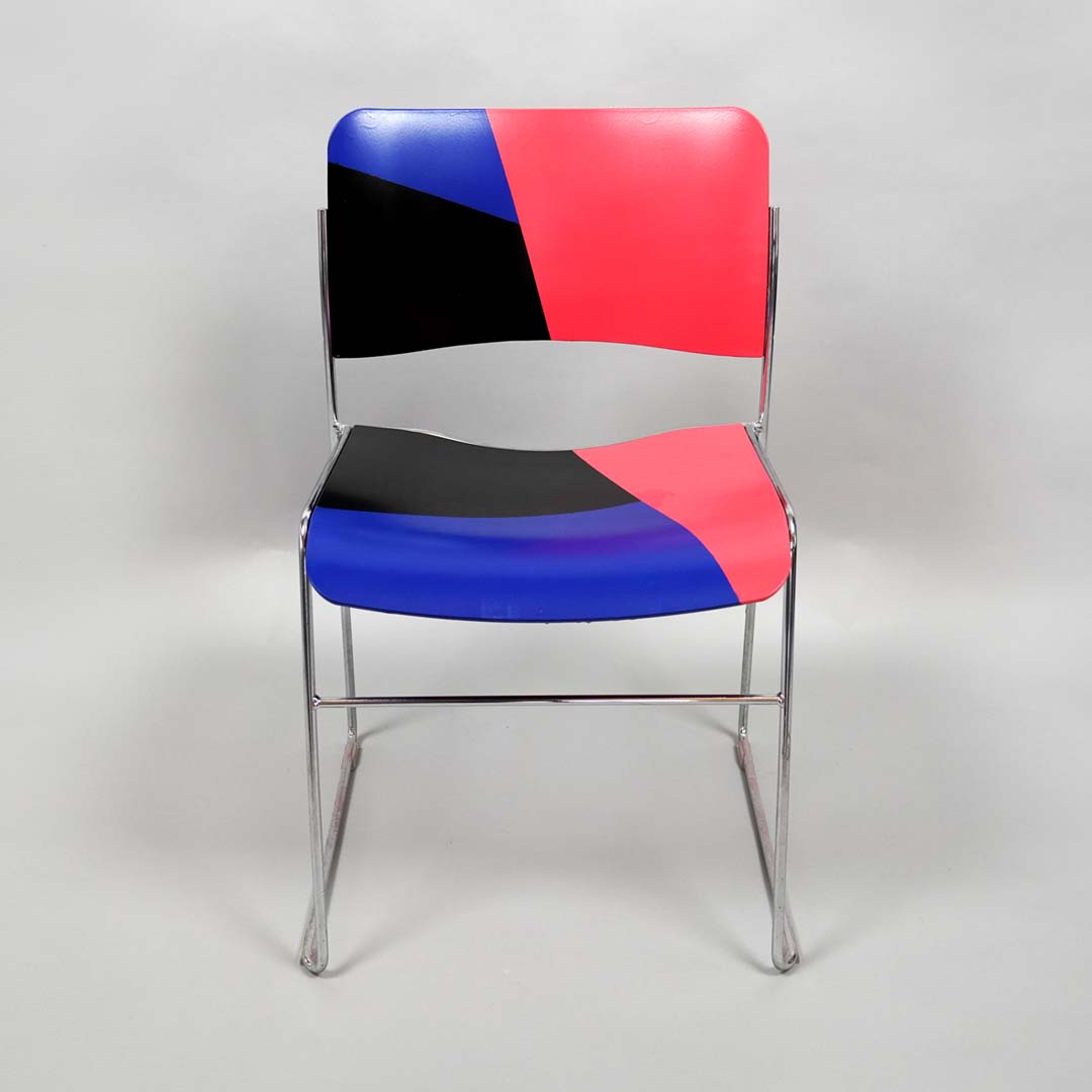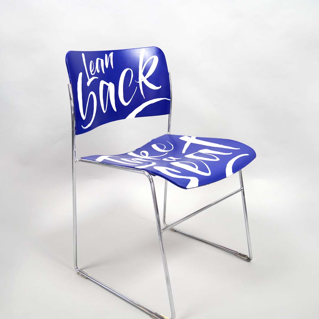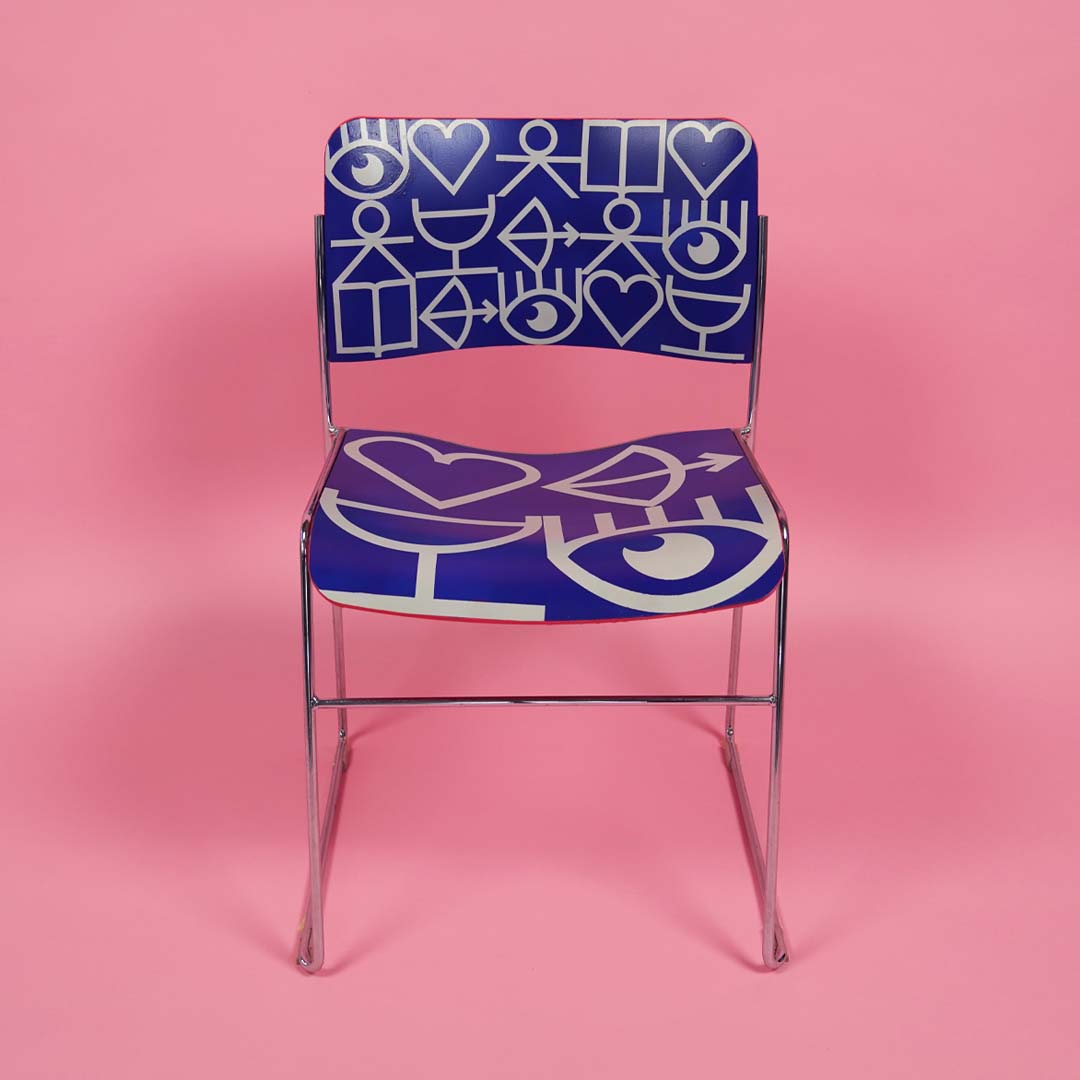 Stolene, der agerede lærred til vores kreative udskejelser, var ikke bare tilfældige stole. Vi havde fornøjelsen af at gentænke den amerikanske møbeldesigner David Rowlands berømte 40/4 stol. Stolens tidløse design er et af de mest banebrydende i det 20. århundrede, og stolen er solgt i over 8 millioner eksemplarer gennem dens 60-årige levetid. At bruges vores egen kreativitet til at udsmykke et stykke historisk kreativitet, syntes vi kun var passende.