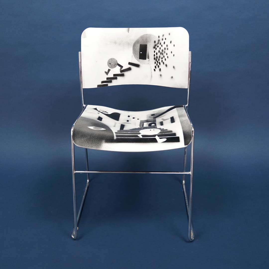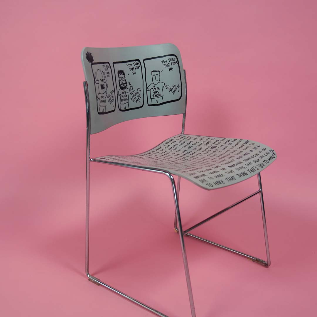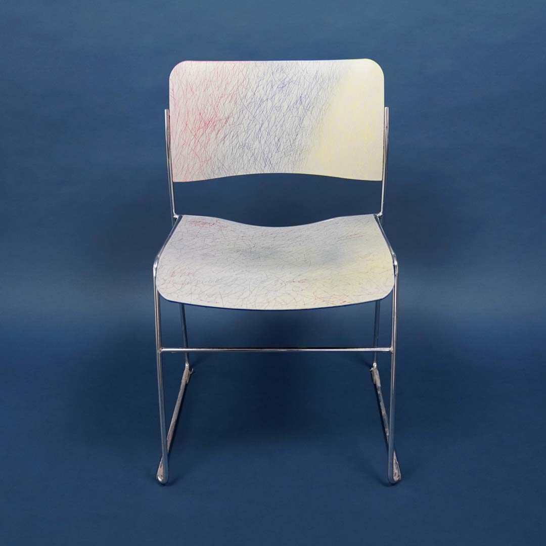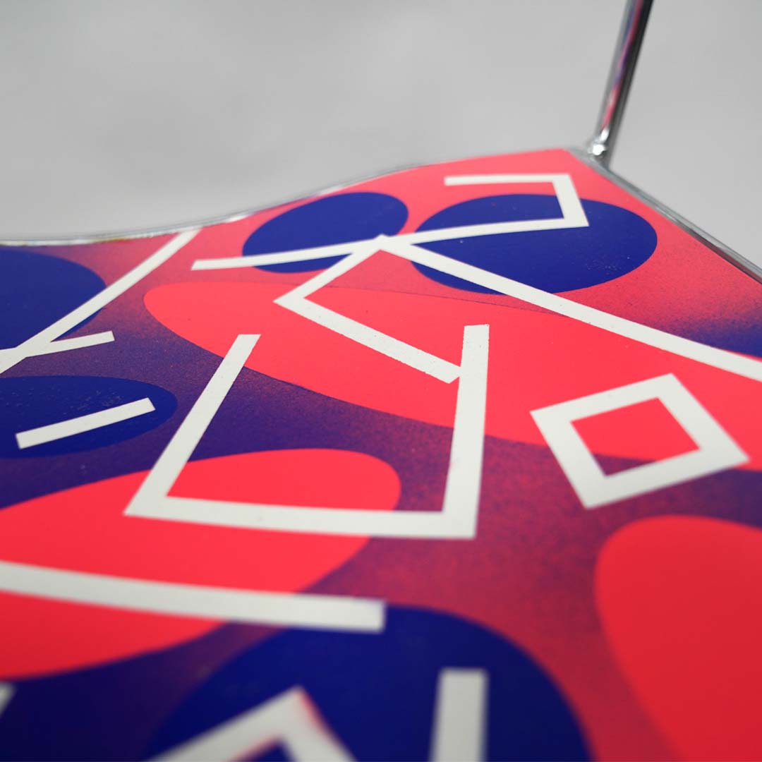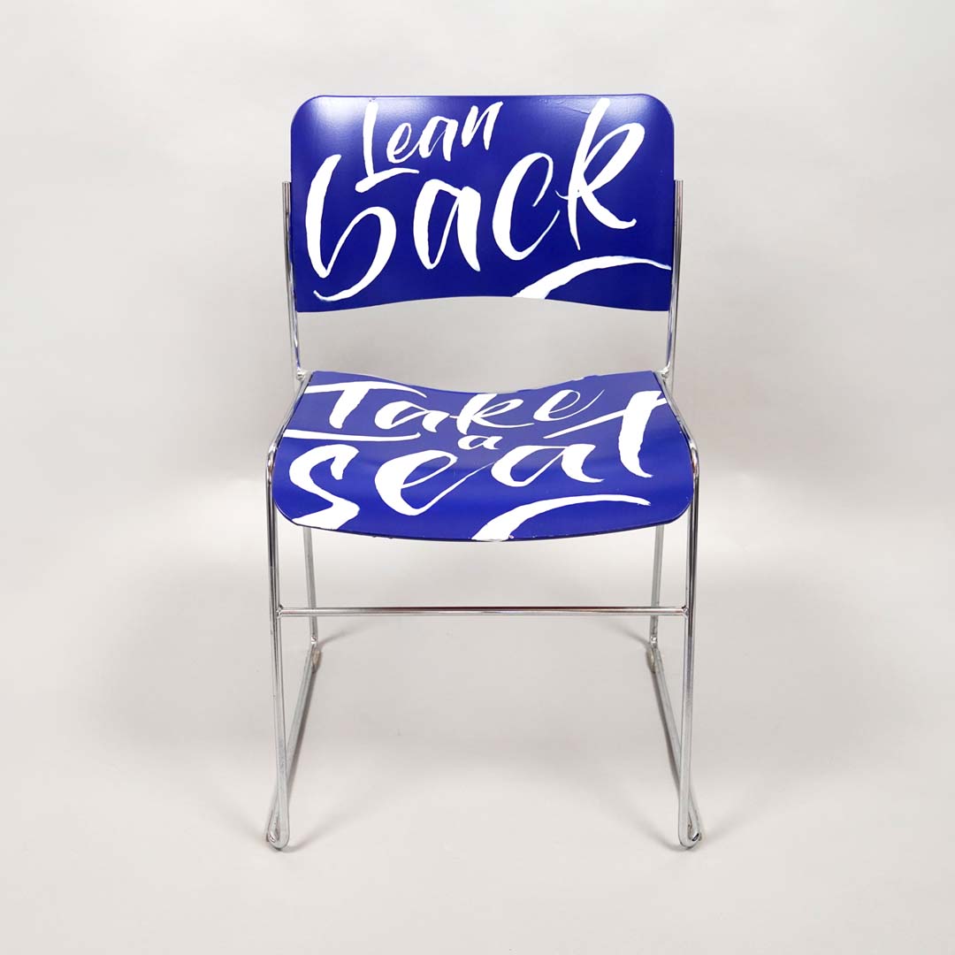 Stolene, der agerede lærred til vores kreative udskejelser, var ikke bare tilfældige stole. Vi havde fornøjelsen af at gentænke den amerikanske møbeldesigner David Rowlands berømte 40/4 stol. Stolens tidløse design er et af de mest banebrydende i det 20. århundrede, og stolen er solgt i over 8 millioner eksemplarer gennem dens 60-årige levetid. At bruges vores egen kreativitet til at udsmykke et stykke historisk kreativitet, syntes vi kun var passende.