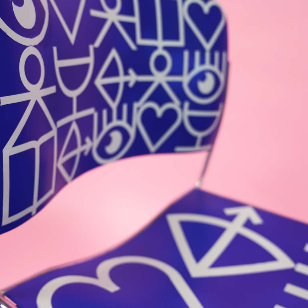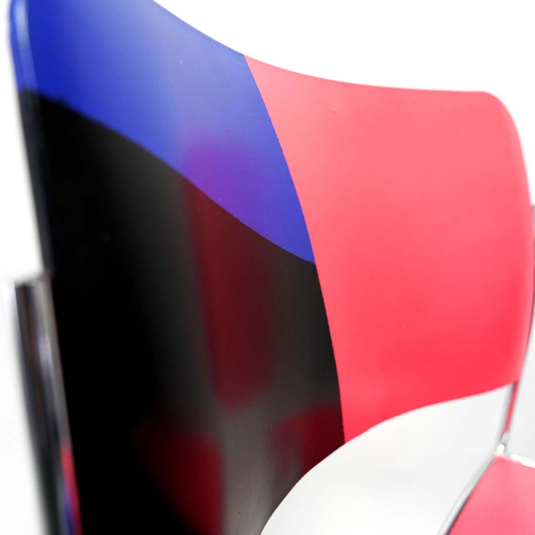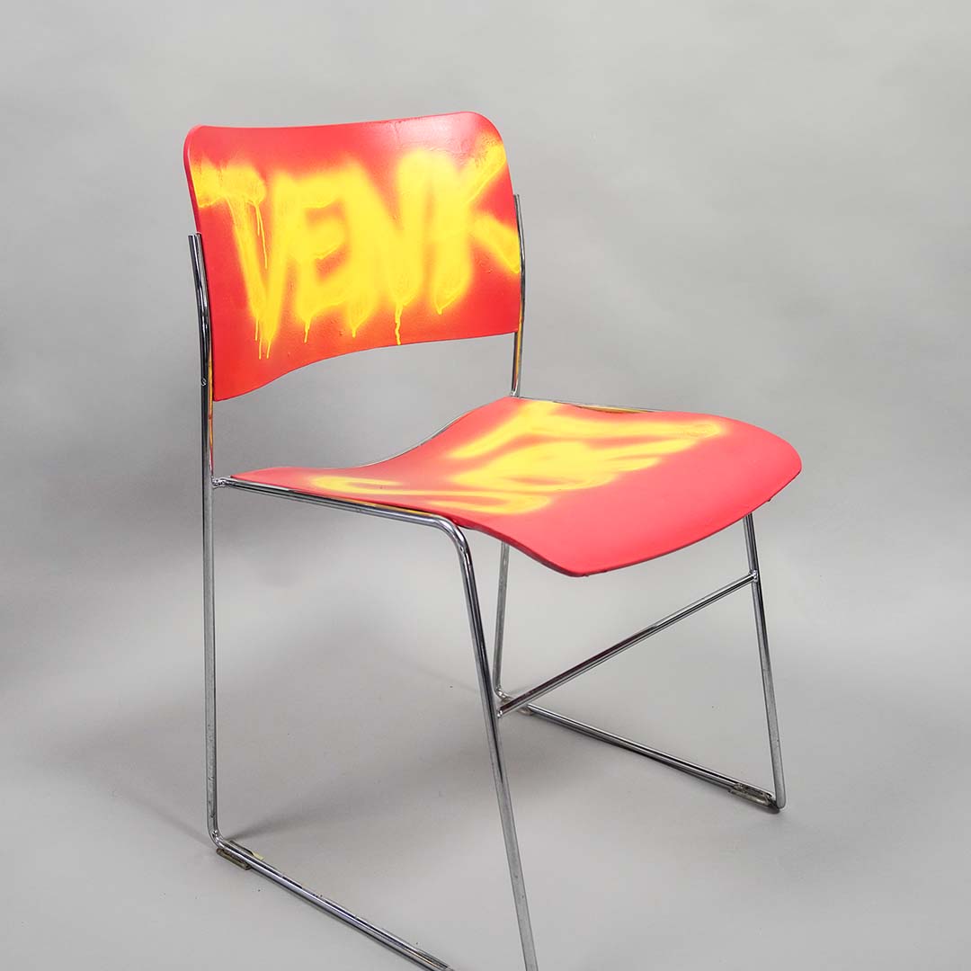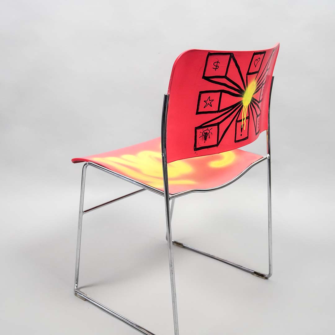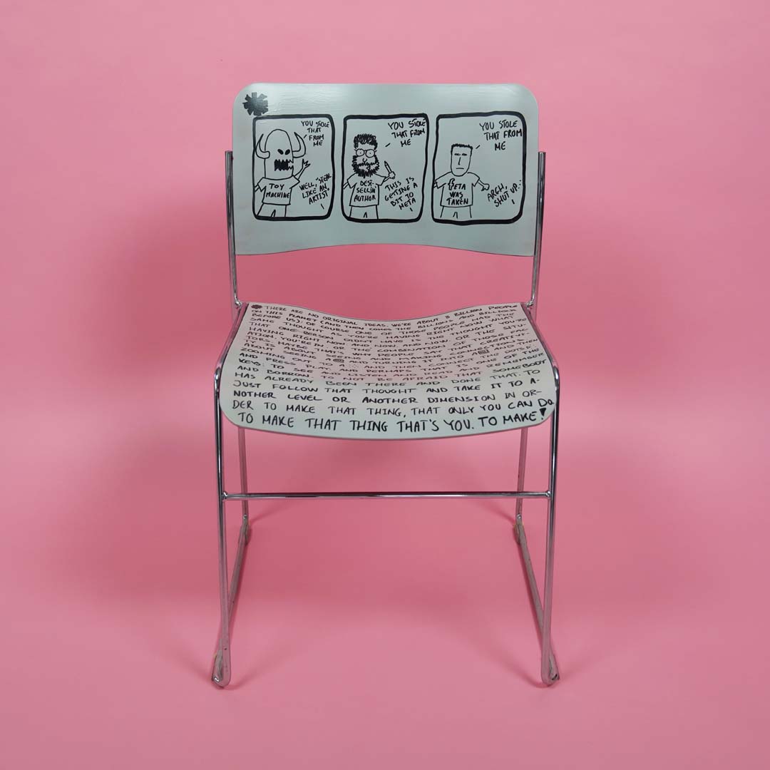 Stolene, der agerede lærred til vores kreative udskejelser, var ikke bare tilfældige stole. Vi havde fornøjelsen af at gentænke den amerikanske møbeldesigner David Rowlands berømte 40/4 stol. Stolens tidløse design er et af de mest banebrydende i det 20. århundrede, og stolen er solgt i over 8 millioner eksemplarer gennem dens 60-årige levetid. At bruges vores egen kreativitet til at udsmykke et stykke historisk kreativitet, syntes vi kun var passende.