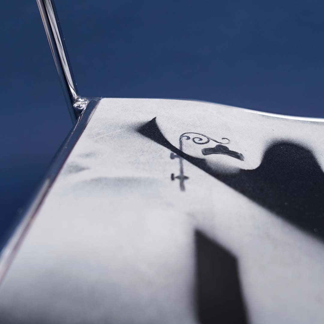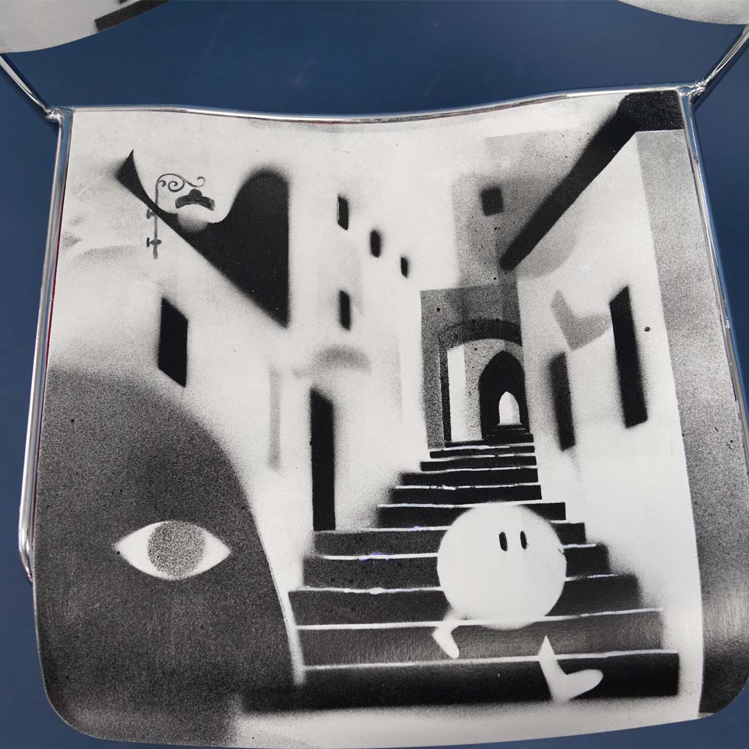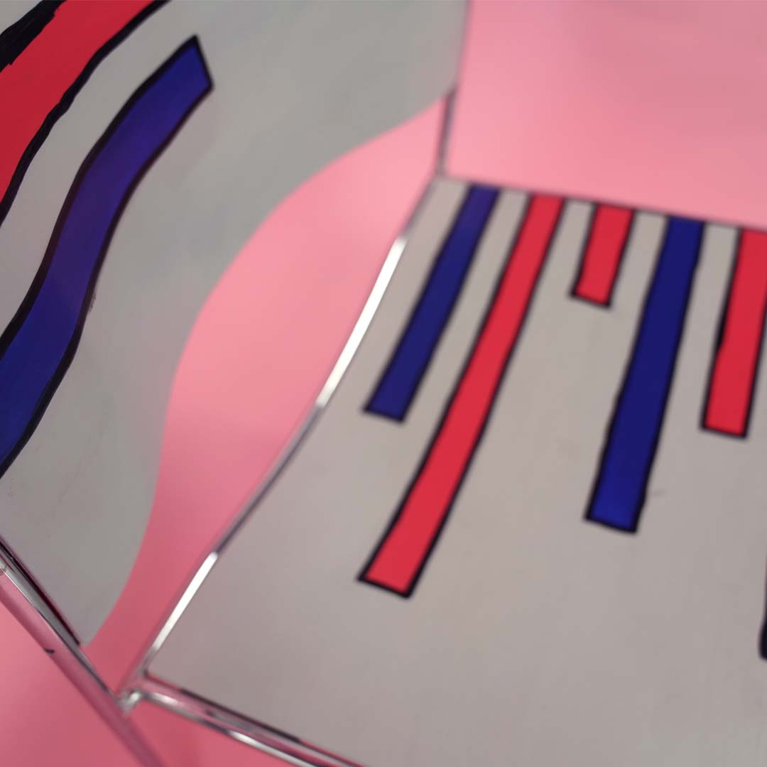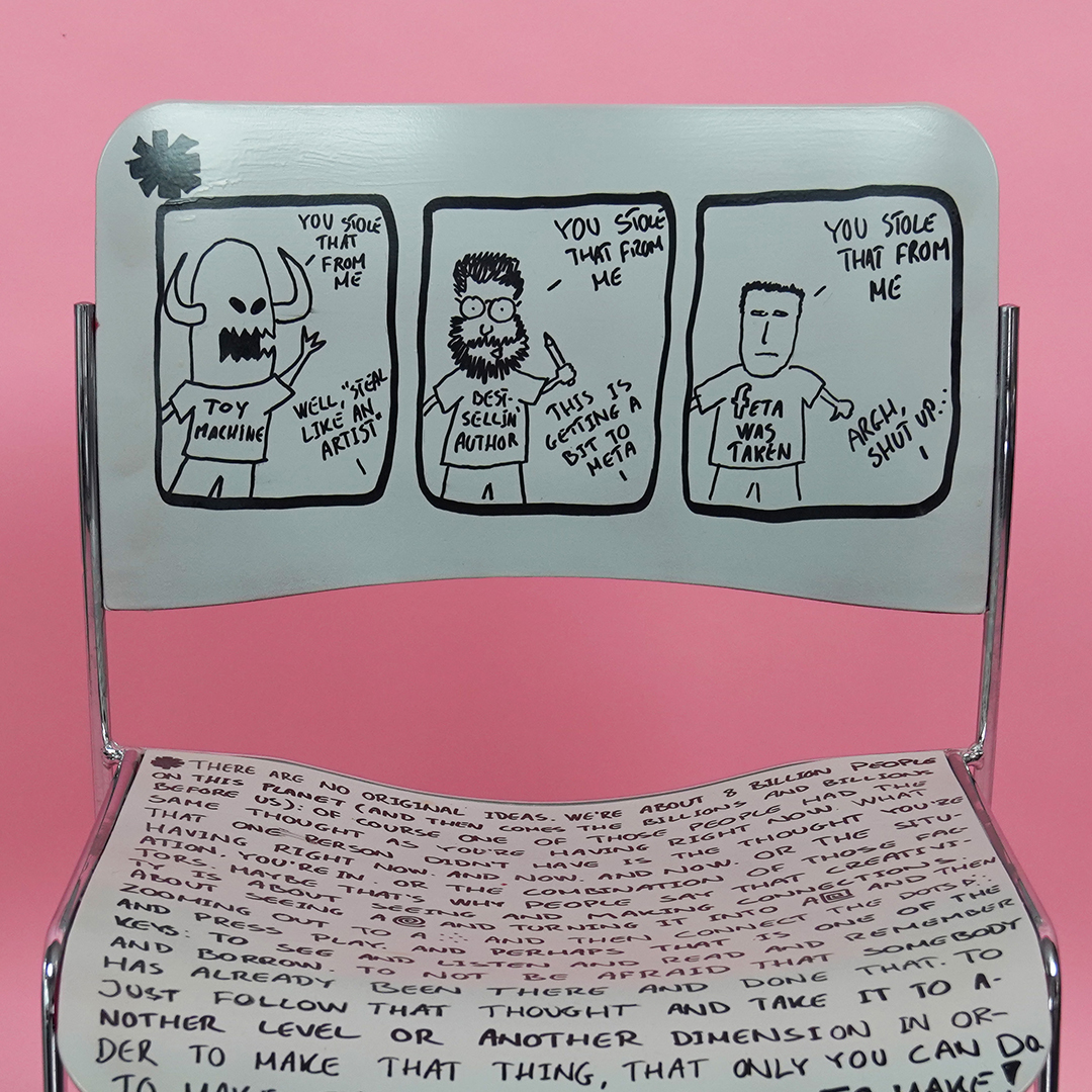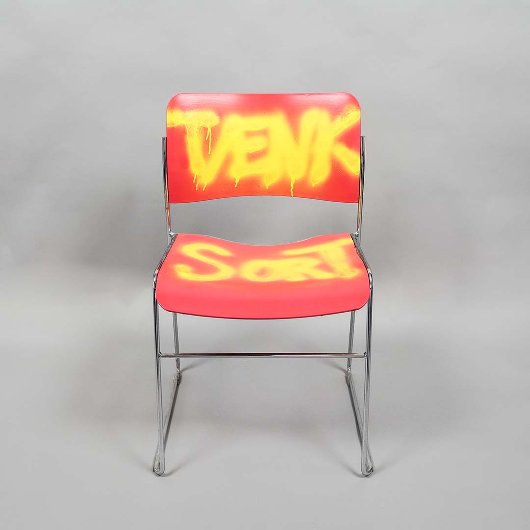 Stolene, der agerede lærred til vores kreative udskejelser, var ikke bare tilfældige stole. Vi havde fornøjelsen af at gentænke den amerikanske møbeldesigner David Rowlands berømte 40/4 stol. Stolens tidløse design er et af de mest banebrydende i det 20. århundrede, og stolen er solgt i over 8 millioner eksemplarer gennem dens 60-årige levetid. At bruges vores egen kreativitet til at udsmykke et stykke historisk kreativitet, syntes vi kun var passende.