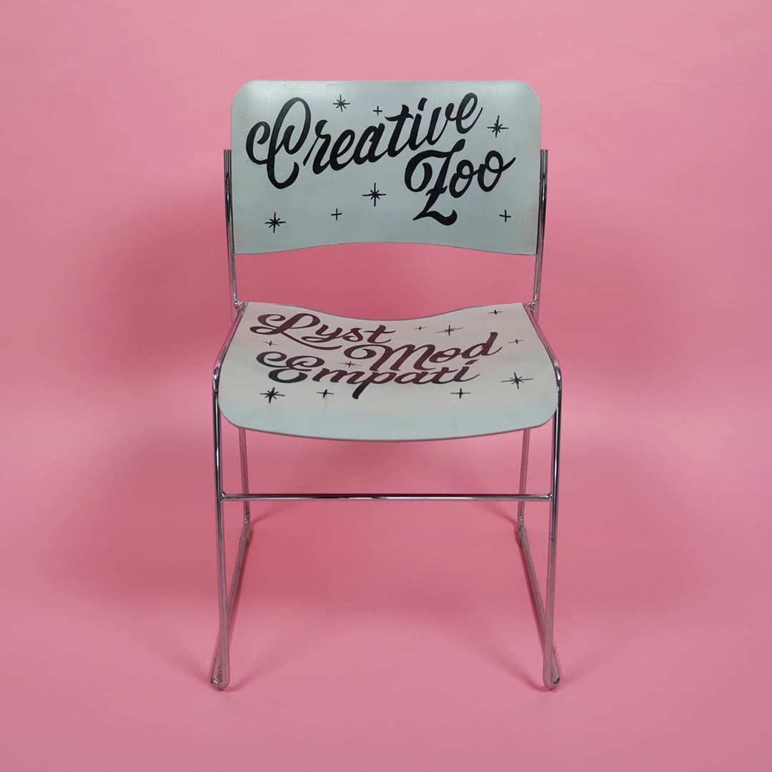 Derfor ville vi lave et projekt, hvor vi kunne udfolde vores kreativitet på en anden måde. Hver især. Men sammen. Vi manglede i øvrigt også stole til kontoret. Så 1+1 = en idé lige til højre(stole)benet.