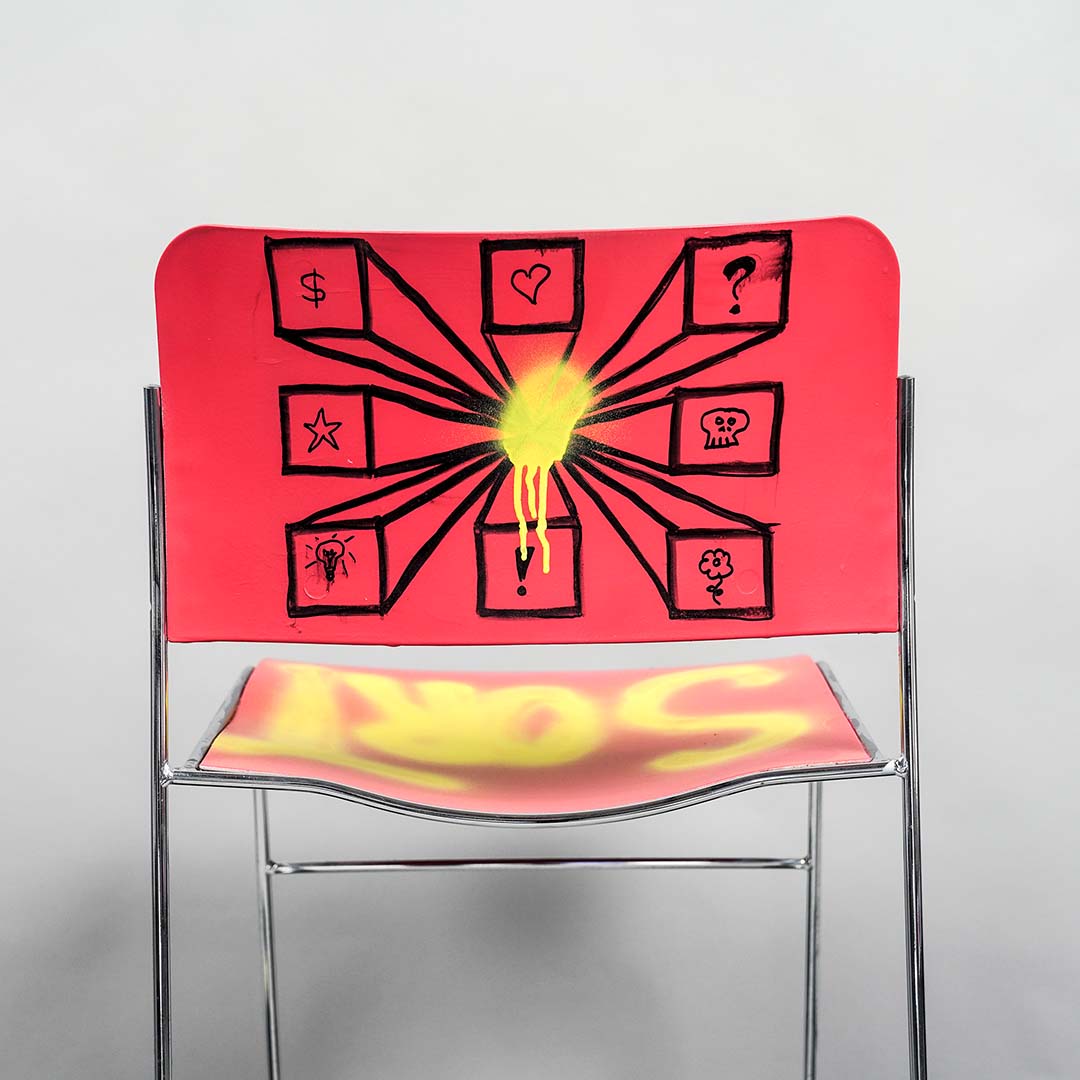 Ergo fik hver medarbejder (der havde tid) til opgave, en varm maj-aften, at udsmykke en stol på sin helt egen måde. Nedenstående er således frugten af arbejdet med kunstværker i former, farver, pap-maché, skarpe linjer og finurlige fortællinger. Vi synes, de sidder lige i skabet.