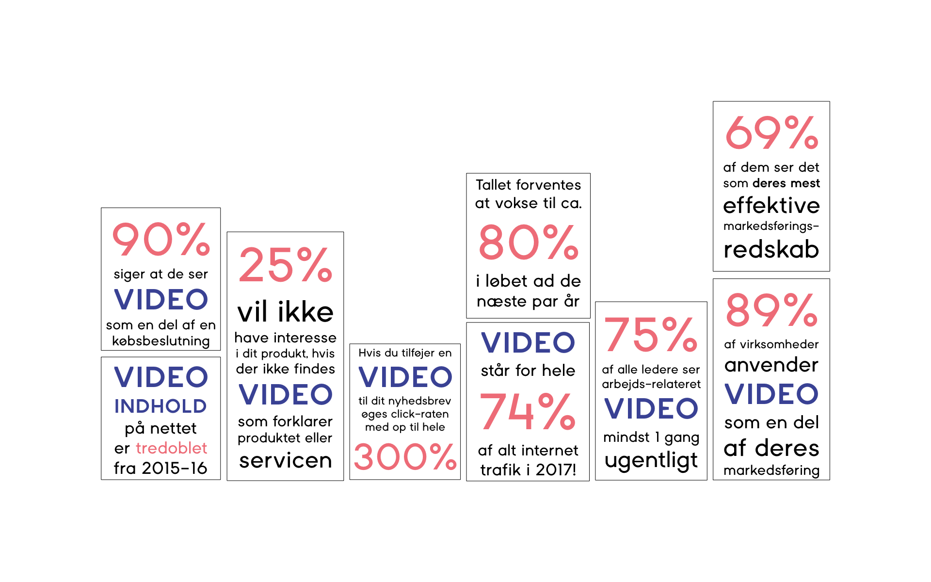 Sagt på en anden måde - videoformatet har indtaget verden. Vi møder både video på sociale medier, hjemmesider og ved køb. En tur over dit Facebookfeed er lig med en stor visuel bevægelse, når diverse videoer starter på autoplay - hver især med deres specifikke formål. Video er kommet for at blive. Netop derfor handler det ikke om, hvorvidt du skal lave video, det handler om, hvordan du skal lave video.